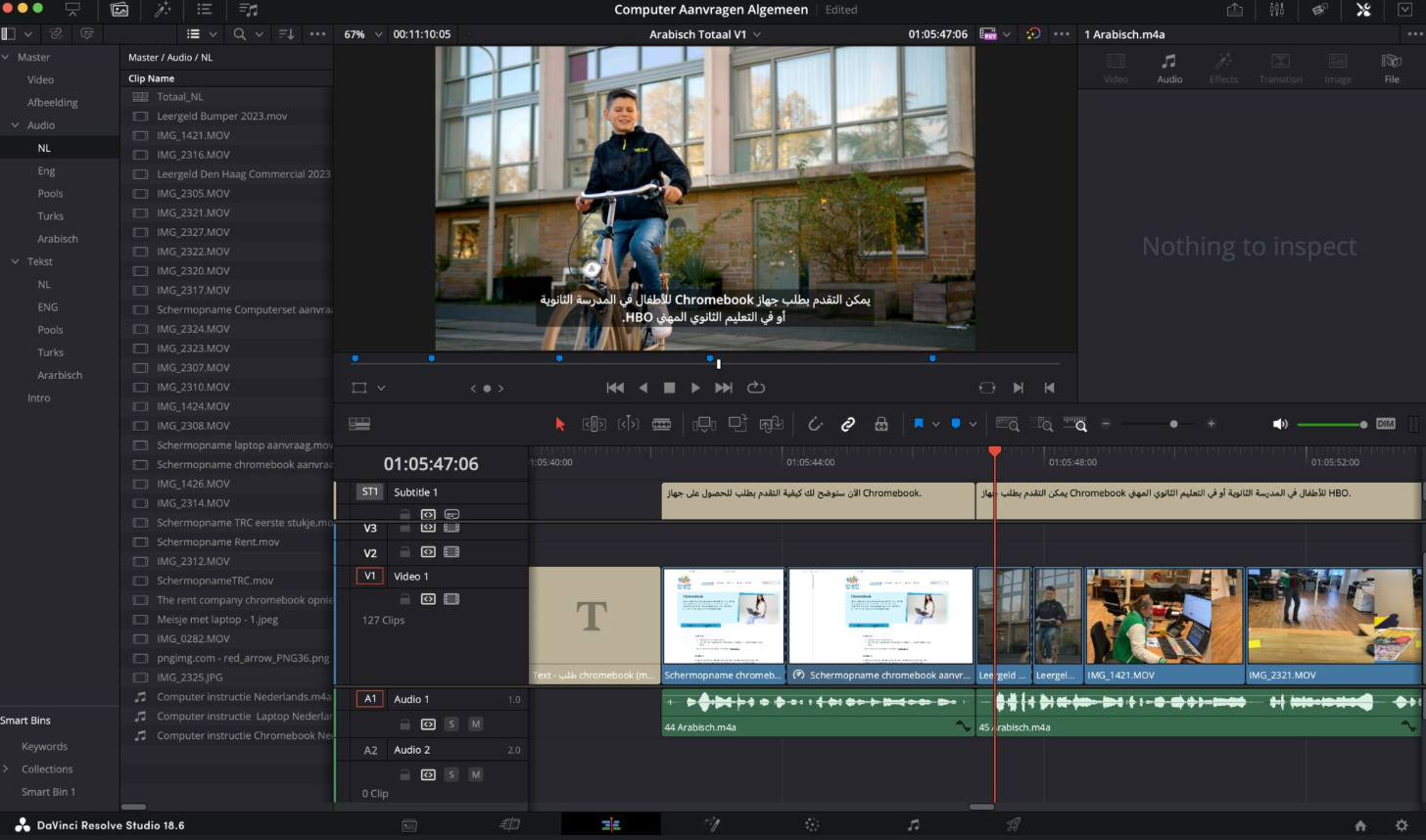 Bij deze opdracht sta ik deze keer niet achter de camera, maar zit ik voor mijn Macbook om alle aangeleverde data te monteren. Met als doel een +/- 50 tal video’s inclusief ondertiteling aan te leveren.
